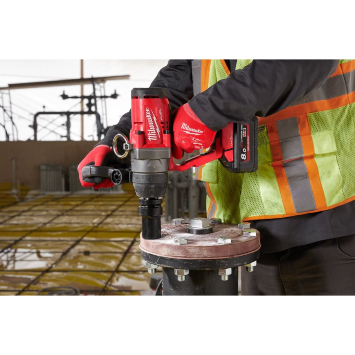 Аккумуляторный гайковерт MILWAUKEE M18 ONEFHIWF1-0X (каркас) (4933459732) - надежный и мощный инструмент для профессионального использования. Благодаря бесщеточному двигателю POWERSTATE он обеспечивает 2033 Нм крутящего момента при завинчивании и до 2400 Нм при отвинчивании гаек, что позволяет работать с крепежом до М42 .