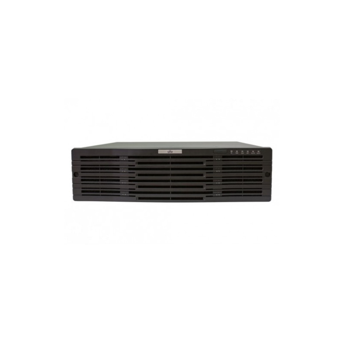 Тип - IP, Количество IP камер - 64, Стандарт сжатия видео - Ultra 265, H.265, H.264, Скорость записи - 384 Мбит/с, Расширение записи - 12 Мп макс., Порт SATA - 16 x SATA до 10 ТБ, Порт eSATA - 1 x eSATA, Видео выходы - 2 х HDMI / 1 х VGA, Сетевой интерфейс - 4 x RJ45 10/100/1000 Мбит/с, 2 x SFP 1.25 Гбит/с