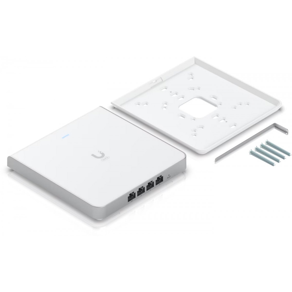 Витончена настінна точка доступу Wi-Fi 6E з інтегрованим комутатором з чотирма портами, призначена для офісних мереж високої щільності.